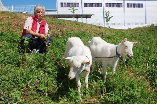 【周南市】医師会病院にヤギ“出勤” 除草、癒やしもお届け