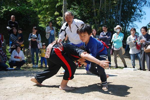 周南市久米の西坂本地区の「子ども相撲大会」が23日、坂本親和館そばの土俵で開かれ、大人の女性の尻相撲も含め54人が熱戦を繰り広げた。 西坂本自治会文化部(江...