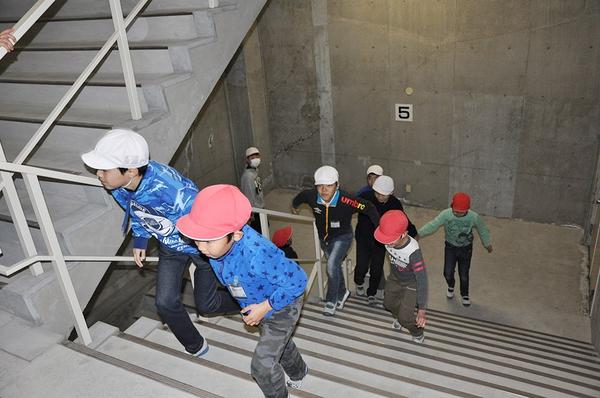【周南市】児童がゆめタウン屋上へ 富田東小・津波想定し訓練