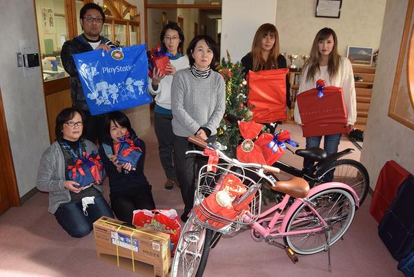 周南市久米の児童養護施設、共楽養育園(安村裕美施設長)に二十五日、周南市昭和通の飲食店、ラヴェールの鬼武文美さんとウェリナの徳原有梨さんらが訪れ、自転車やゲー...