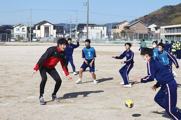 【周南市】YMGUTS 160人にハンドの魅力 富田中で体験教室