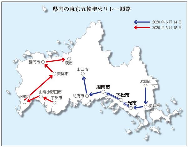 東京2020オリンピック・パラリンピック聖火リレー県実行委員会は2020年5月14、15日に県内を巡る五輪聖火リレーの順路を発表した。周南地区は初日に光市、下...