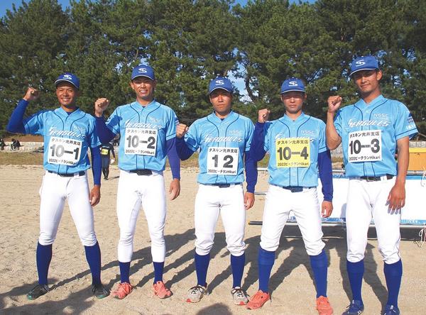 スタートを切るリレーの第1走者 リレー優勝は日鉄ステンレス硬式野球部 3年ぶりの「ビーチランHikari」(新周南新聞社など後援)が6日、山口県光市の虹...