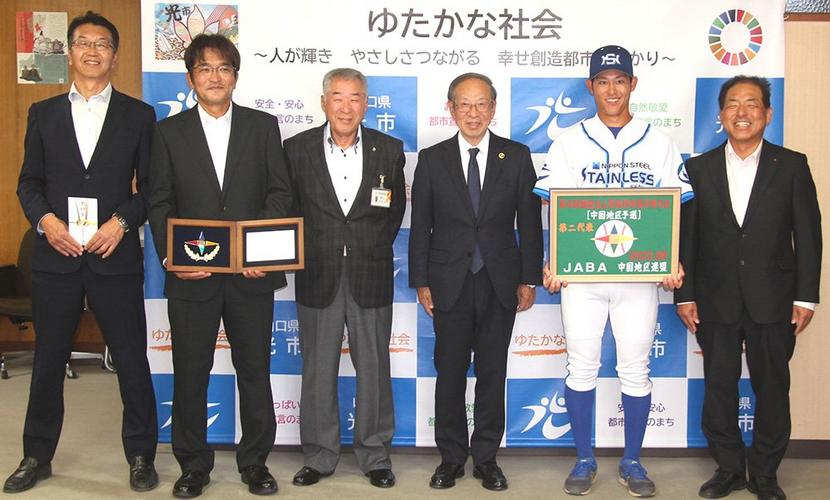 30年ぶりに社会人野球日本選手権大会に出場する日鉄ステンレス硬式野球部(山口シーガルズ=坂本耕哉主将、30人)が24日に光市役所▽26日に周南市役所を訪れて両...