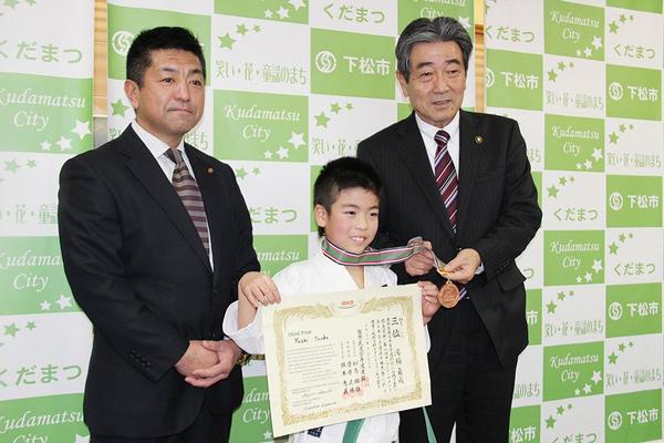 昨年10月に東京の国立代々木競技場第二体育館で開かれた国際武道空手道連盟(IBKO)の第8回全日本空手道選手権大会の組手・小学3年生の部で3位になった下松市の...