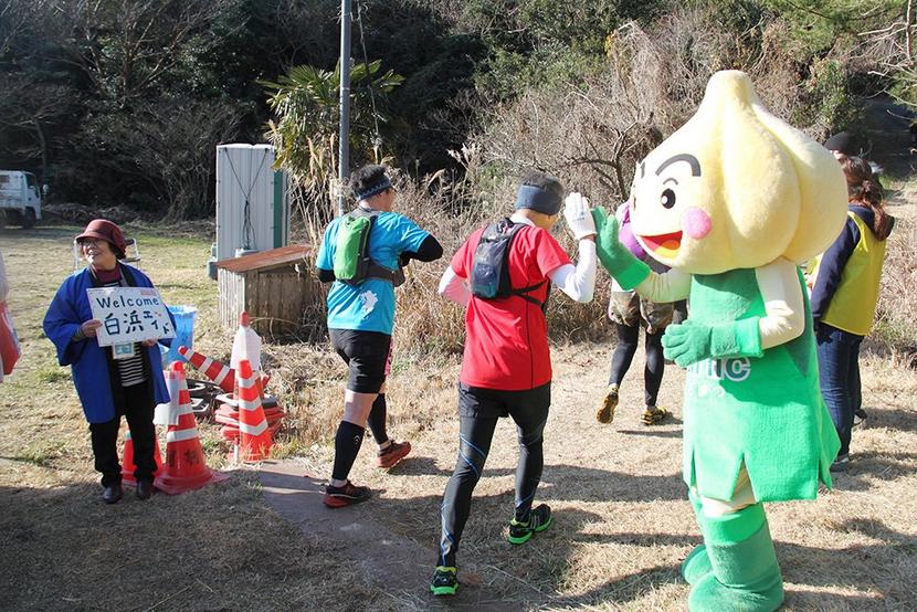 ハイタッチで盛り上がる白浜エイド