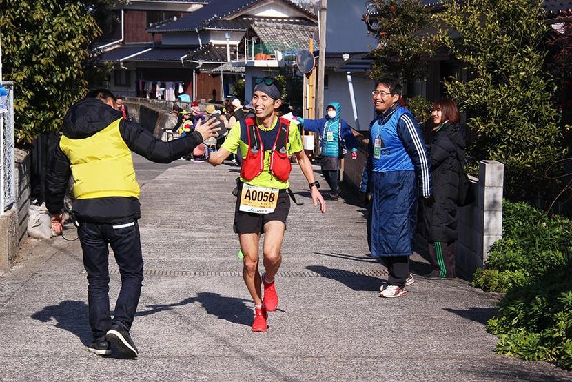 ランナーをもてなす白浜エイド