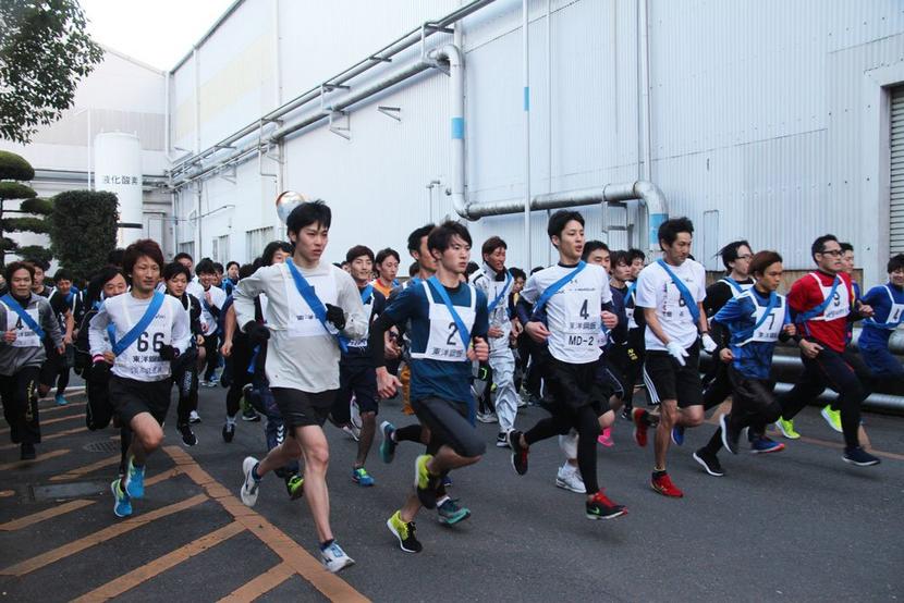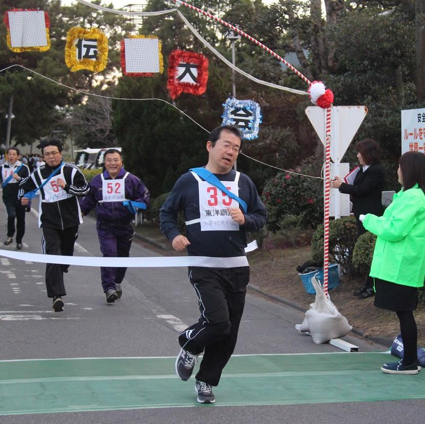 選手は多田俊之大会会長の号砲でスタートを切った。コース沿いでは同僚が大きな声援を送り、甲斐事業所長や山脇聡男副事業所長も堂々のゴールインを果たした。