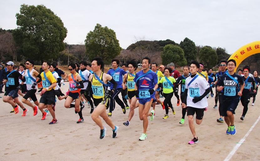選手は国井市長の号砲で中学・女子・高校の部と一般の部の2回に分かれて出走。各部門共通の21キロ、7区間でたすきをつないだ。