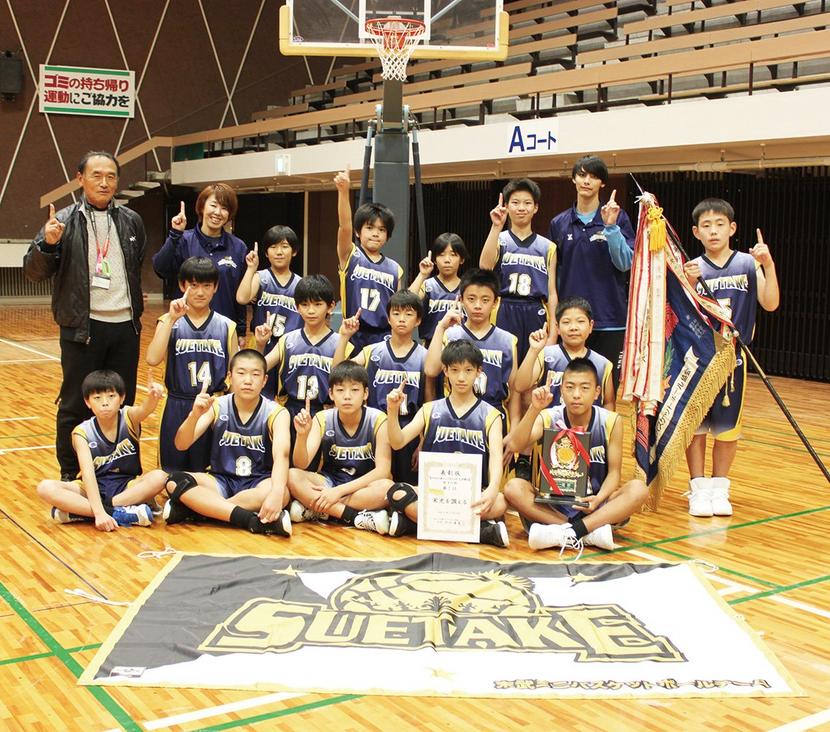 優勝を喜ぶ選手たち(末武ミニバスケットボールスポーツ少年団(山口県下松市提供)提供)