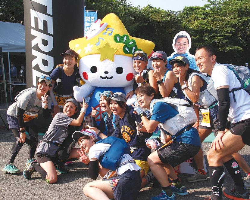 「くだまる」と記念撮影するランナー