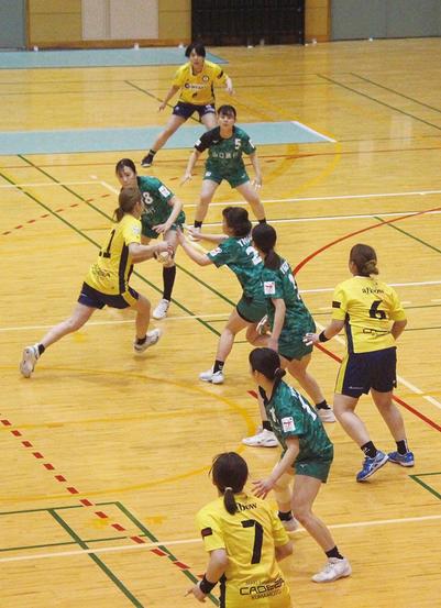 山口銀行の女子ハンドボールチーム「YMGUTS」のホームゲームが17日、山口県下松市の下松スポーツ公園体育館で開かれ、福岡県筑紫野市の社会人女子チーム「エフト...