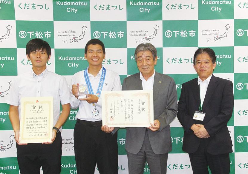 【下松】弓道インターハイで男子個人2位に 下松工高の大賀さん・快挙を市長に報告