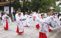 【下松】みこ舞い奉納あでやかに 花岡八幡宮・秋季例祭で女子7人