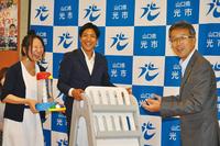 【光】子育て支援センターに3種 武田薬品労組が遊具寄贈