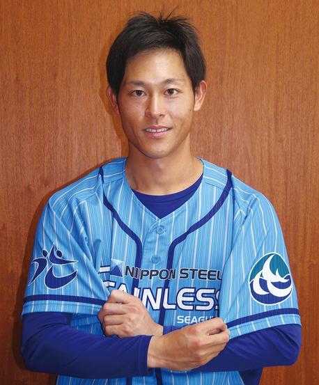両市章が描かれた新しいユニホームを披露する坂本主将