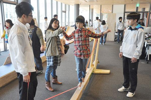 スポーツクライミングのボルダリングと綱渡りのスラックラインの体験会が16日から18日まで周南市の新徳山駅ビルの徳山駅前図書館2階入り口広場や3階交流室で開かれ...