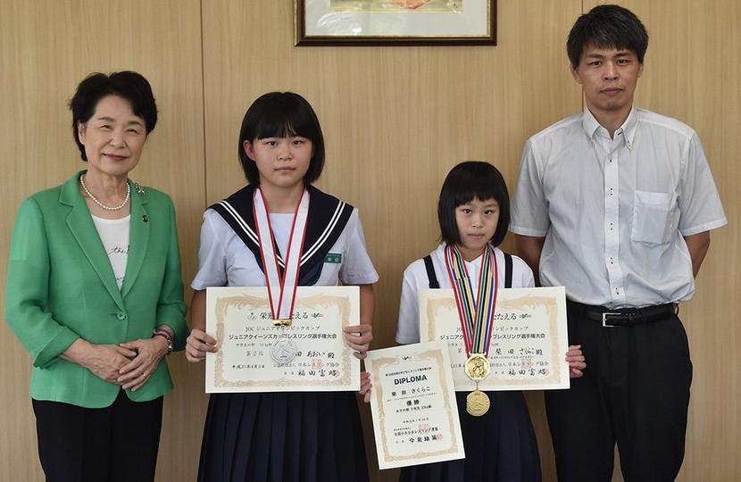 左から藤井市長、あおいさん、さくらこさん、寛さん
