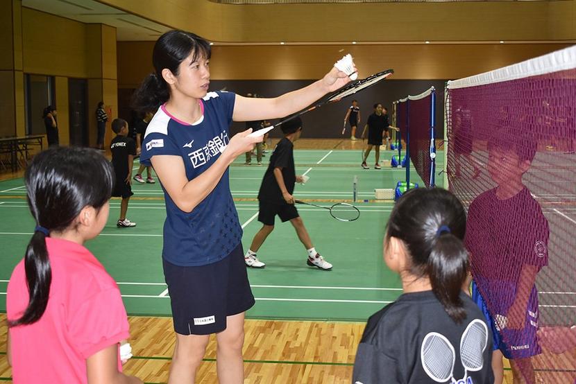 周南市の桜木バドミントンスポーツ少年団の子どもたち26人が23日、西京銀行行員の実業団チーム「ACT SAIKYO」の選手4人から同チームが拠点とする栗屋のA...