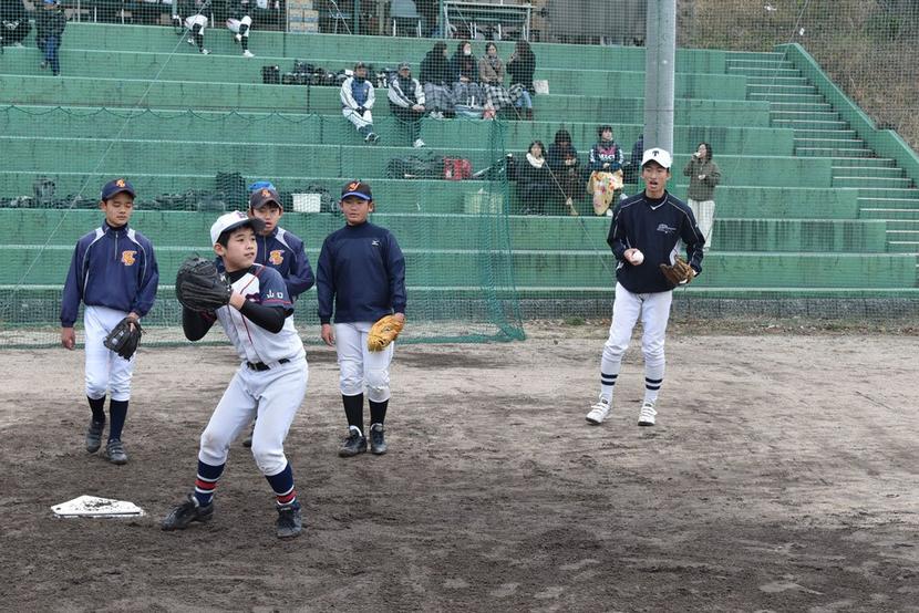この教室は子どもたちの野球離れを防ごうと、高校生が発案して両校がスポ少に提案し、岐山遠石、櫛浜、久米、桜木、桜田、徳山中央、沼城、福川、夜市、秋月、富田西スポ少が参加した。