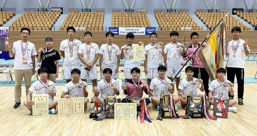 決勝戦の相手は攻撃力のある中部大学春日丘(愛知県)。ゴールキーパーの上野主将を中心によく守り、3年の保科竜之介選手が12得点をあげるなど、全選手が役割を果たし、前後半ともにリードして31―26のスコアで優勝を決めた。
