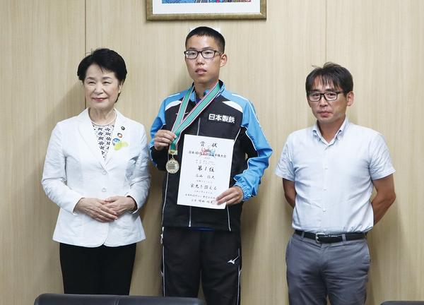 8月の全国中学体育大会に出場する山口県周南市内各校の生徒の激励会が12日、同市役所で開かれ、各校の出場選手の代表が藤井律子市長に大会に向けた決意を表明した。 ...