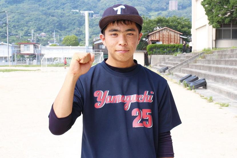 ピッチャーでエースの岡崎由昴選手(3年、周陽中出身)は「粘りの投球が強み。失点をしないように試合をつくる」と意気込む。