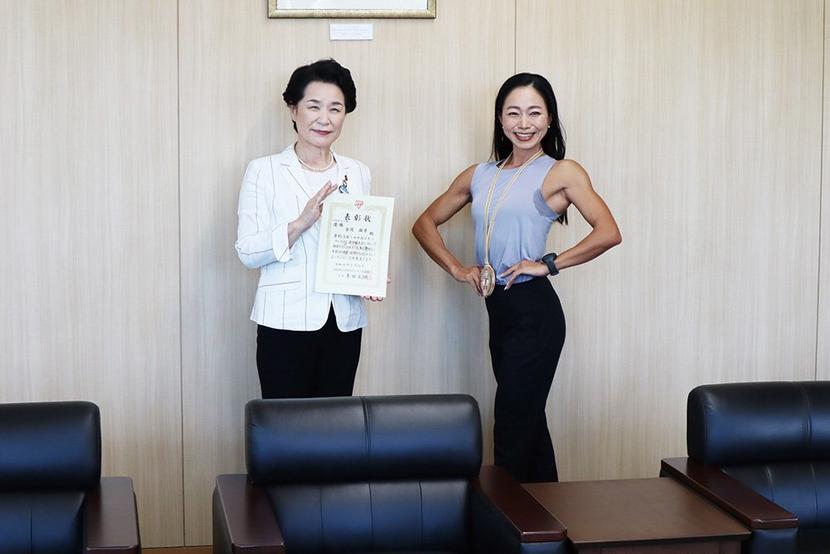 7月に岡山県で開かれた中国ビキニフィットネス選手権で山口県周南市横浜町の平村設備工業社長、金岡麻季さん(43)が見事優勝し、15日、藤井律子市長を表敬訪問した...