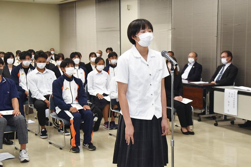 誓いの言葉を述べる藤本さん