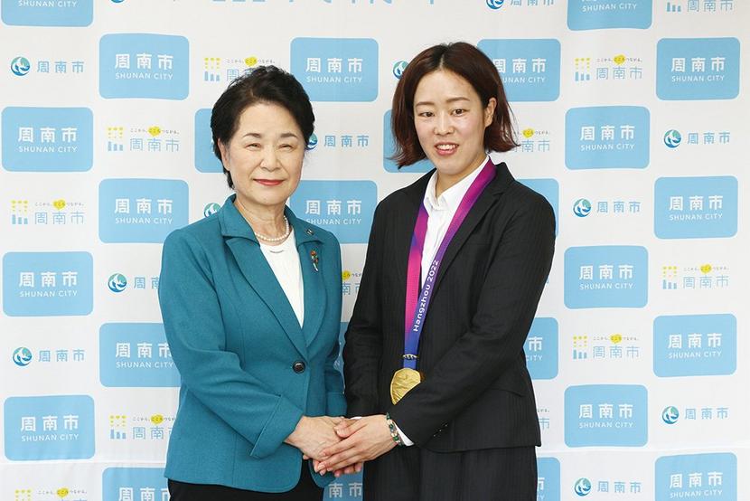 中国・杭州で10月5日に開催された第19回アジア球技大会・ハンドボール競技で優勝した日本代表「おりひめJAPAN」。チームの一員として大会に出場した山口県周南...