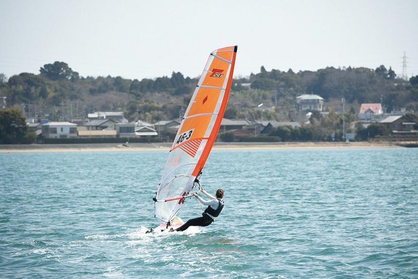 ウインドサーフィンボードに乗る林選手