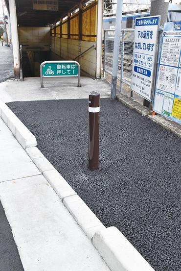 読者の声周南市山口県周南市の徳山駅前再開発に伴い、山陽本線をくぐってみなみ銀座と住崎町を結ぶ地下道のみなみ銀座側のスロープになっている出入り口の周囲に車の進入を防ぐ縁石が設置され、縁石の切り込みに高さ80センチの車止めのポールが立てられた。縁石などは2月に完成したが縁石とポールの間が狭く、電動車いすの利用者が出入りに手間取っているという住民の声が新周南新聞社に寄せられて、周南市道路課に聞いてみた。